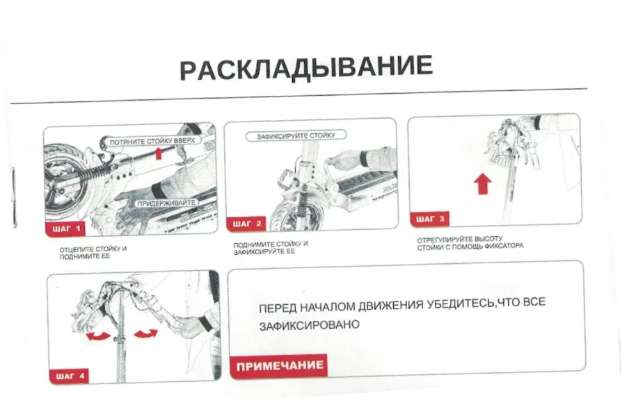 ОЧЕНЬ ВАЖНО: при первом запуске снять блокировку, в противномслучае электросамокат не поедет.